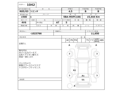 Toyota SIENTA Комплектация: Год: 2023 Объем: 1500 см³ Мощность: 120 л.с. 67 кВт Трансмиссия: Кузов: MXPC10G Пробег: 15000 км. Оценка: 4.5 Аукцион: NISSAN Osaka Лот: 1042