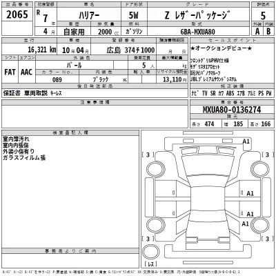 Toyota HARRIER Комплектация: Z Leather - Package Год: 2025 Объем: 2000 см³ Мощность: 171 л.с. Трансмиссия: Кузов: MXUA80 Пробег: 16000 км. Оценка: Аукцион: TAA Hiroshima Лот: 2065 Статус: