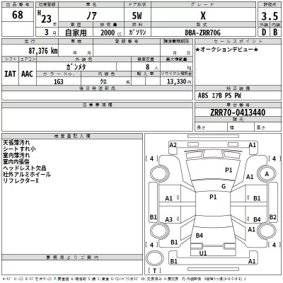 Toyota NOAH Комплектация: Год: 2011 Объем: 2000 см³ Мощность: 143 л.с. Трансмиссия: Кузов: ZRR70G Пробег: 87000 км. Оценка: 3.5 Аукцион: TAA Hiroshima Лот: Статус: продано