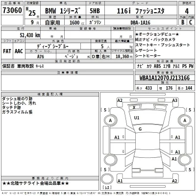 BMW 1-Series Комплектация: 116i ファッショニ Star Год: 2013 Объем: 1600 см³ Мощность: 136 л.с. 70 кВт Трансмиссия: Кузов: 1A16 Пробег: 52000 км. Оценка: Аукцион: TAA Chubu Лот: 73060