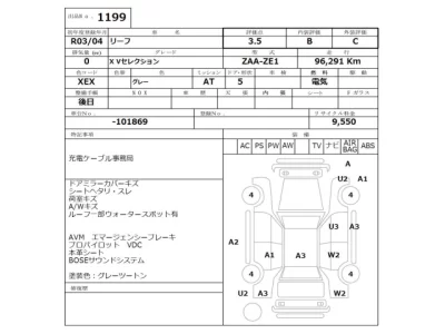 Nissan LEAF Комплектация: X V Selection Год: 2021 Объем: Мощность: 150 л.с. 110 кВт Трансмиссия: Кузов: ZE1 Пробег: 96000 км. Оценка: 3.5 Аукцион: NISSAN Osaka Лот: 1199