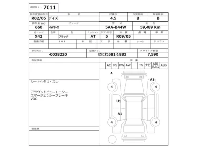Nissan DAYZ Комплектация: HWS-X Год: 2020 Объем: 660 см³ Мощность: 52 л.с. 38 кВт Трансмиссия: Кузов: B44W Пробег: 59000 км. Оценка: 4.5 Аукцион: NISSAN Osaka Лот: